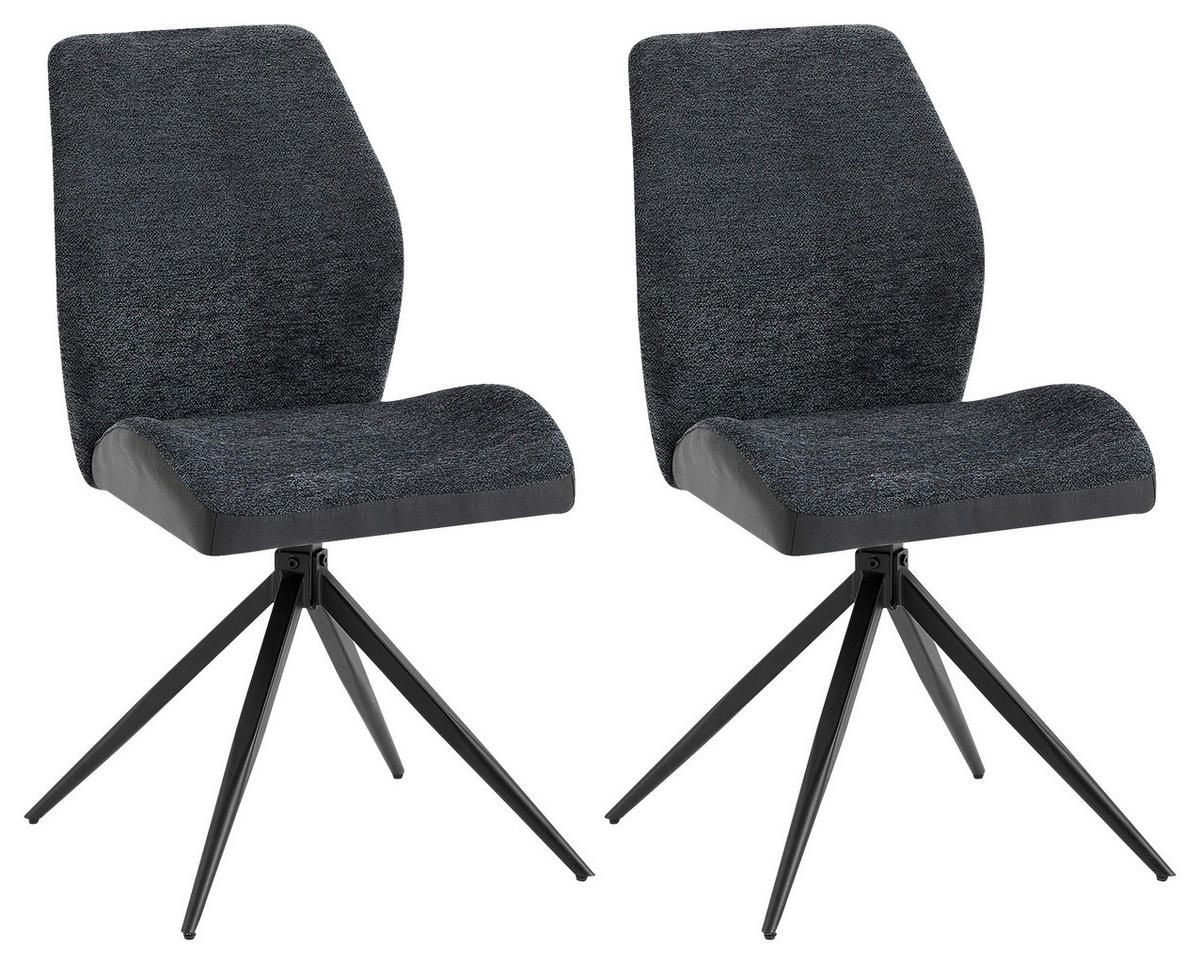STUHL-SET 2 Stück Sitzfläche 360° drehbar Mikrofaser, Bouclé  - Anthrazit/Schwarz, MODERN, Textil/Metall (46/87/55cm) - MID.YOU