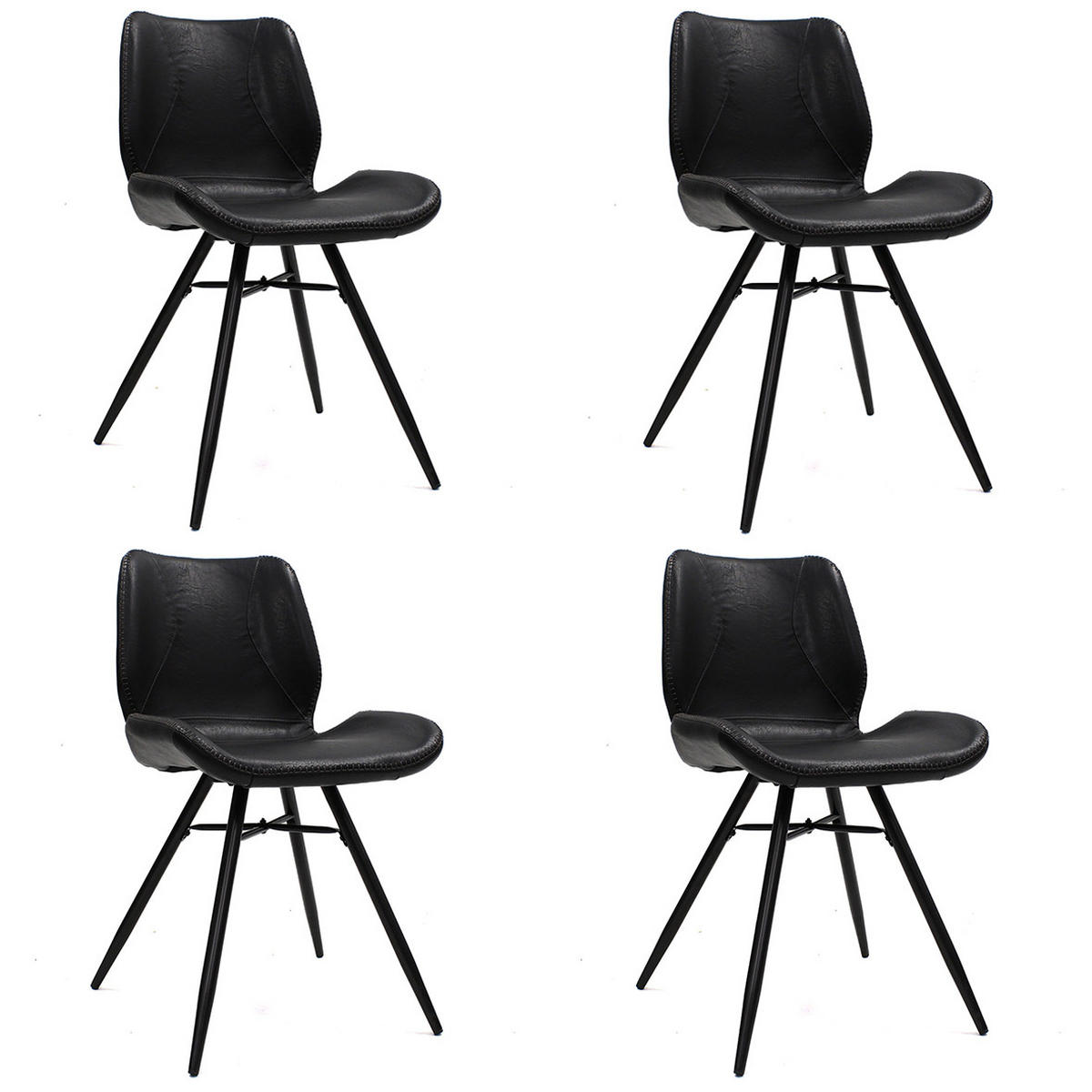 Stuhl-Set (4-teilig) aus PU-Kunstleder in Schwarz: auffallend und kompakt