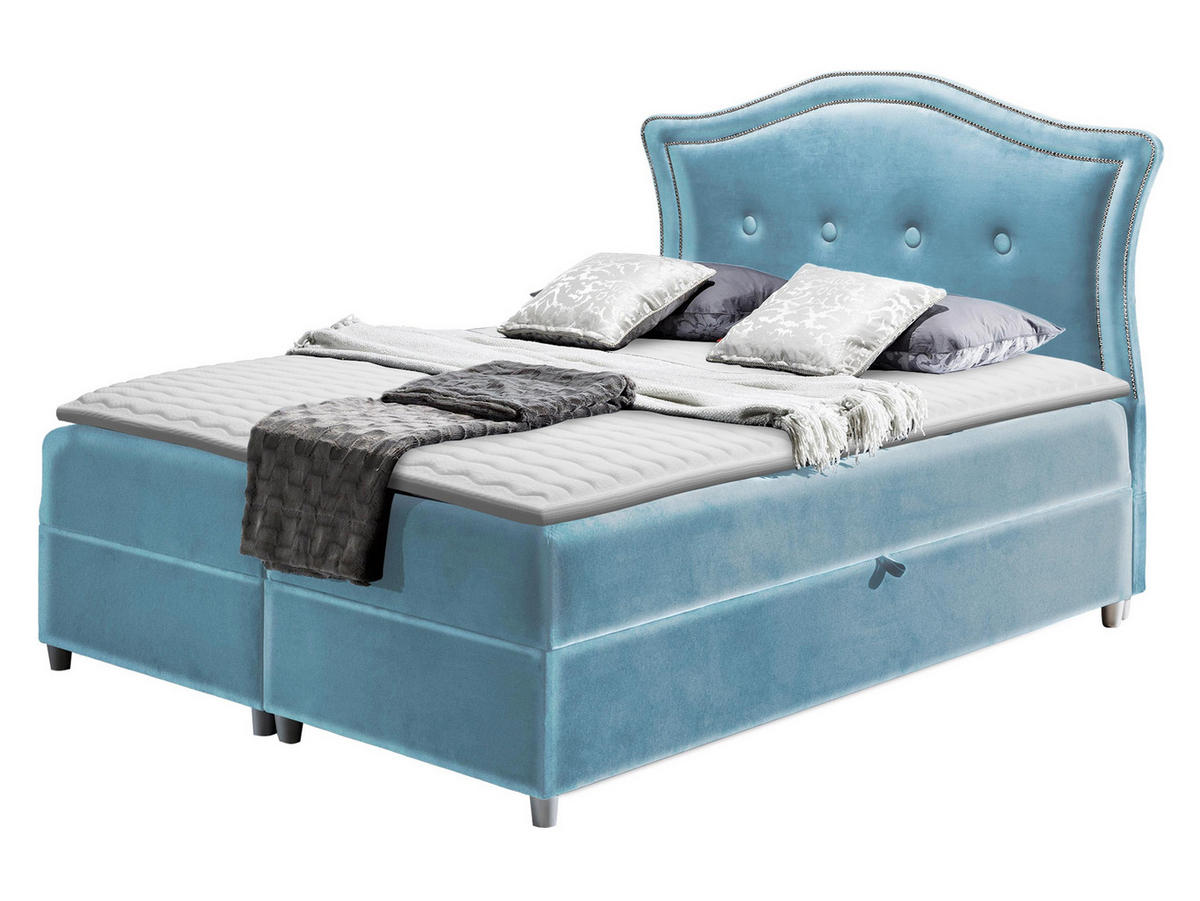 - Bett im Standard mit zwei Bettkästen für die Bettwäsche auf beiden Seiten des Bettes. Durch Federn wird das Aufklappen erleichtert.