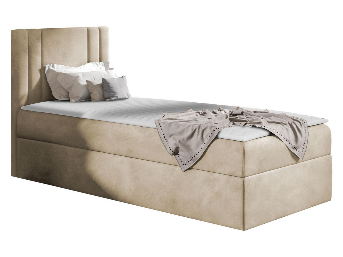 - Bett im Standard mit Bettkasten für die Bettwäsche. Durch Federn wird das Aufklappen erleichtert,