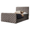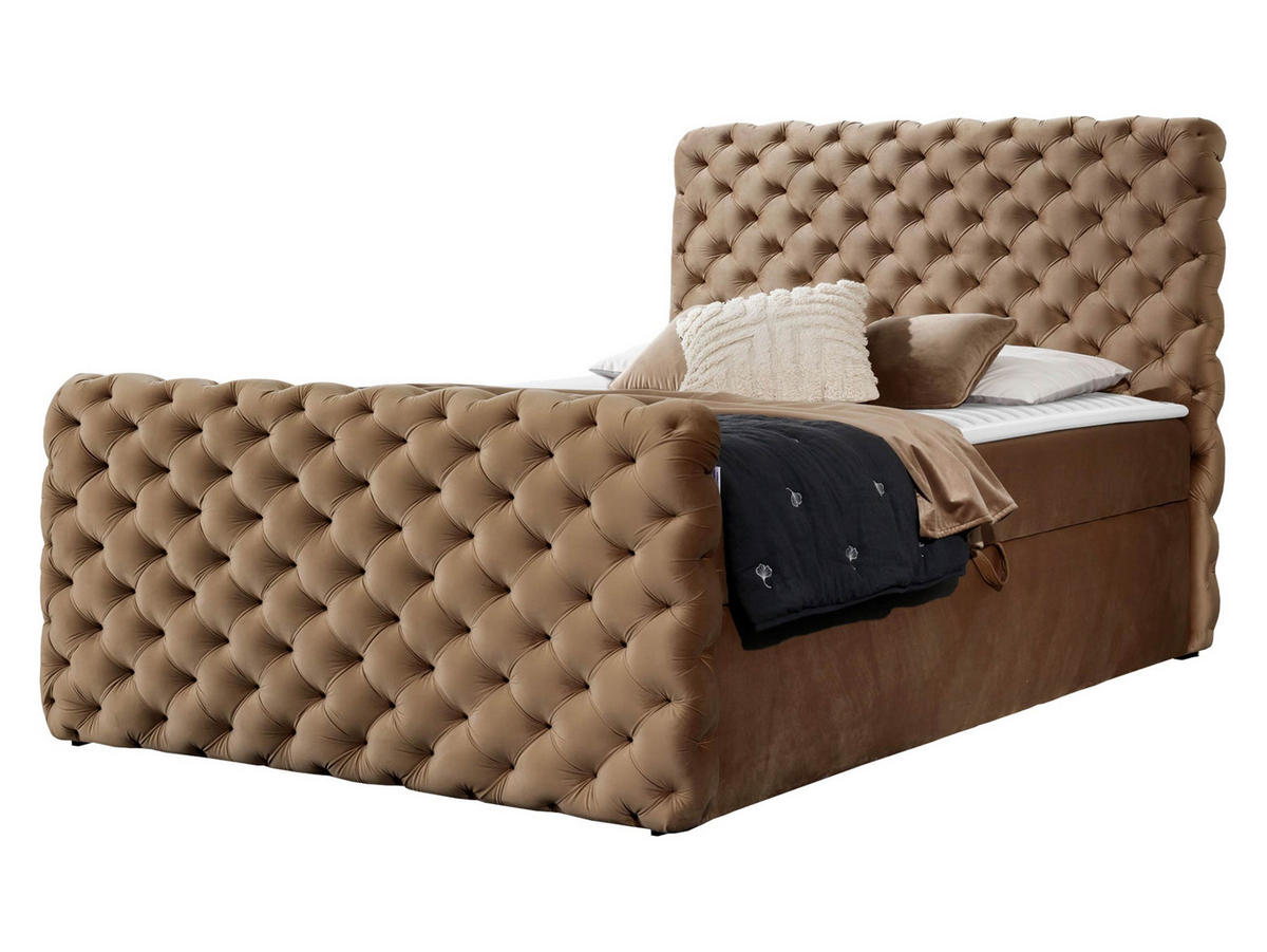 - Bett im Standard mit zwei Bettkästen für die Bettwäsche auf beiden Seiten des Bettes. Durch Federn wird das Aufklappen erleichtert,
