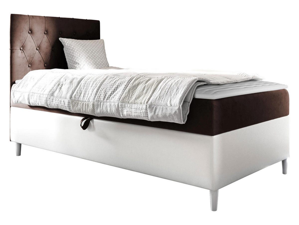 - Bett im Standard mit Bettkasten für die Bettwäsche. Durch Federn wird das Aufklappen erleichtert,