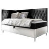 - Bett im Standard mit Bettkasten für die Bettwäsche. Durch Federn wird das Aufklappen erleichtert,