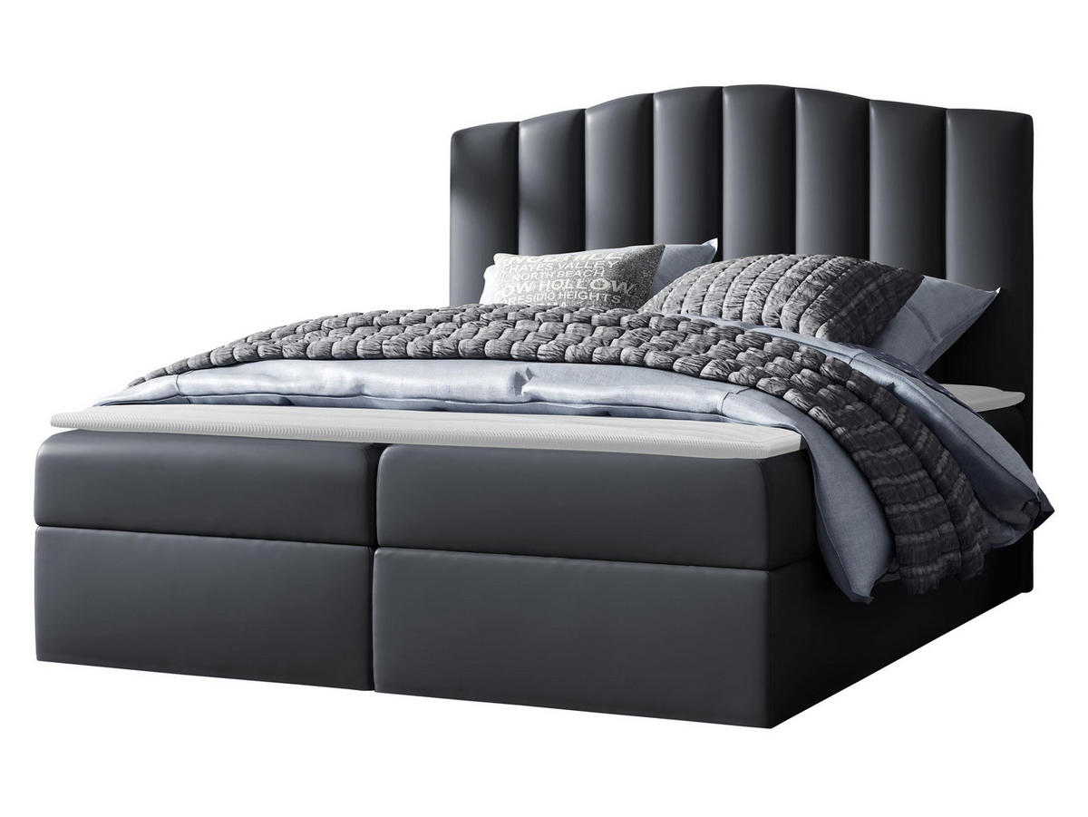 - Bett im Standard mit zwei Bettkästen für die Bettwäsche auf beiden Seiten des Bettes. Durch Federn wird das Aufklappen erleichtert,