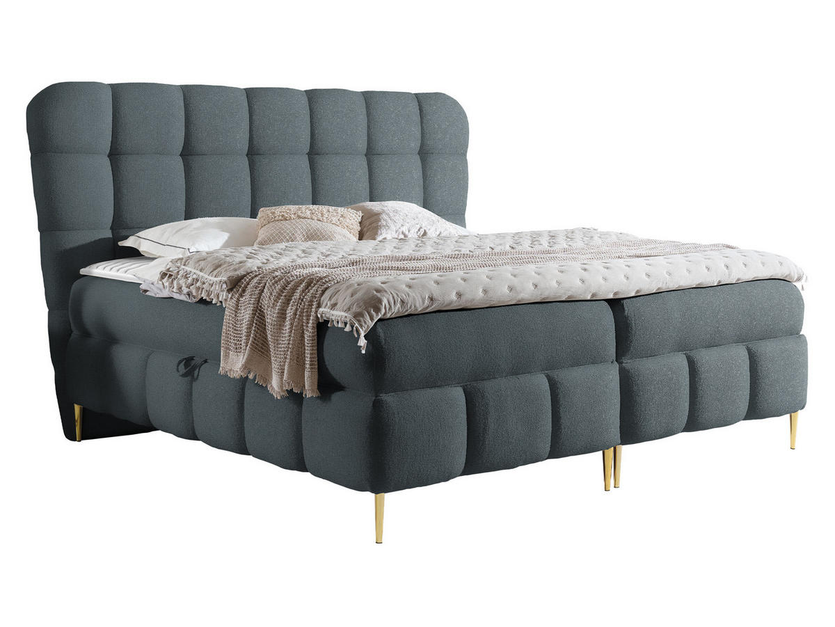 - Bett im Standard mit zwei Bettkästen für die Bettwäsche auf beiden Seiten des Bettes. Durch Federn wird das Aufklappen erleichtert,