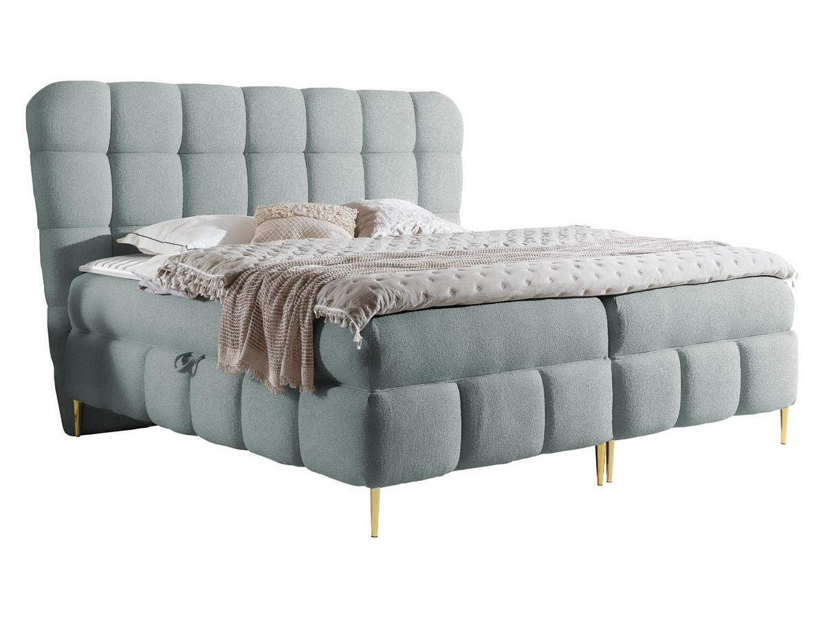 - Bett im Standard mit zwei Bettkästen für die Bettwäsche auf beiden Seiten des Bettes. Durch Federn wird das Aufklappen erleichtert,