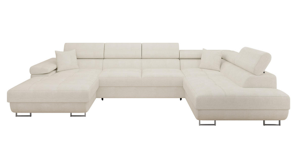 WOHNLANDSCHAFT Torezio Bis, Seite: Rechts - Ecru, Holz/Textil (346/90/203cm) - MIRJAN24