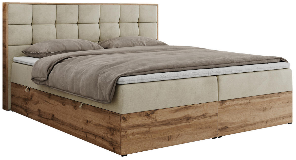 - Besonderheiten: Zwei Bettkästen, Topper 5 cm, Gepolstertes Kopfteil