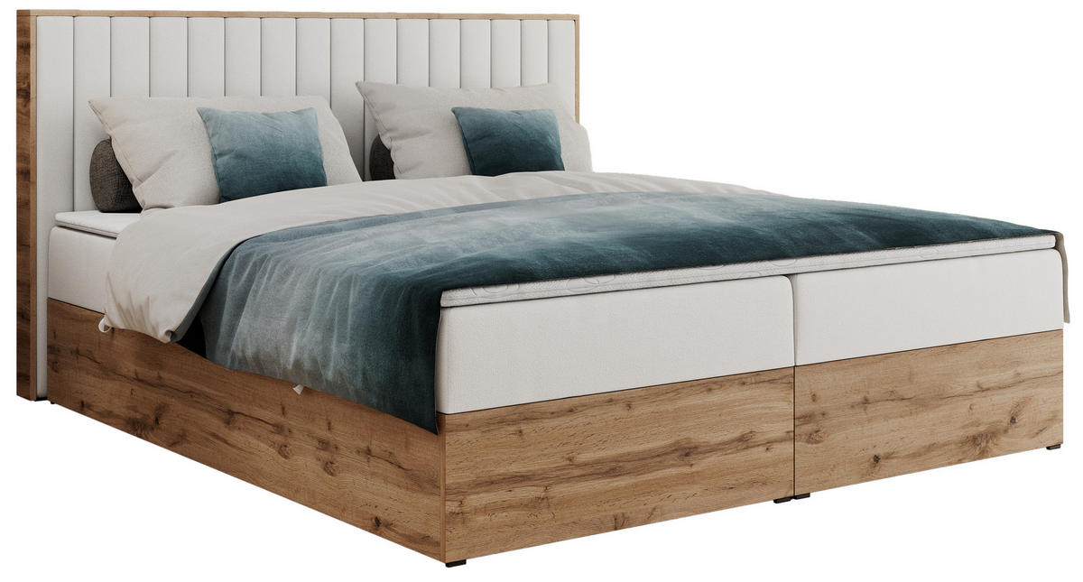 - Besonderheiten: Zwei Bettkästen, Topper 5 cm, Gepolstertes Kopfteil