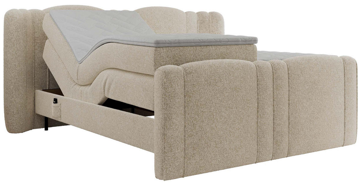 - Besonderheiten: Bettkasten, Federkernmatratze, Matratze in verschiedenen Härtegraden erhältlich, gepolstertes Kopfteil, Topper durchgehend, Kingsize