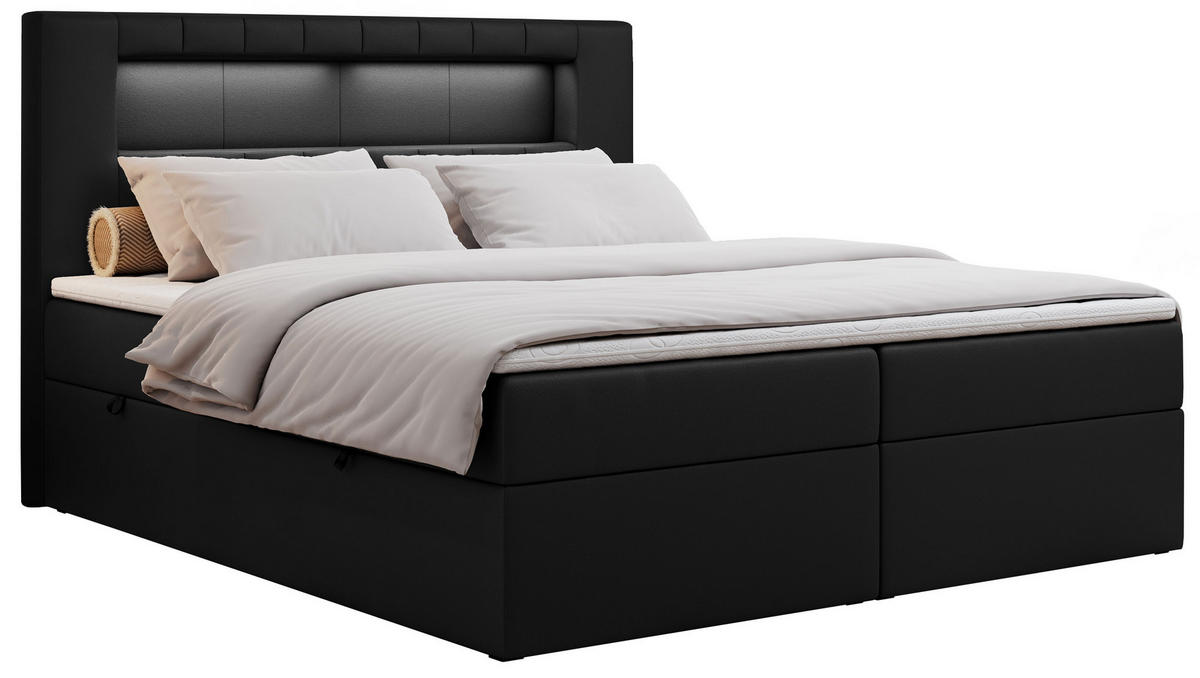 - Besonderheiten: Bettkasten, Federkernmatratze, Matratze in verschiedenen Härtegraden erhältlich, gepolstertes Kopfteil, Topper durchgehend, Kingsize, Beleuchtung