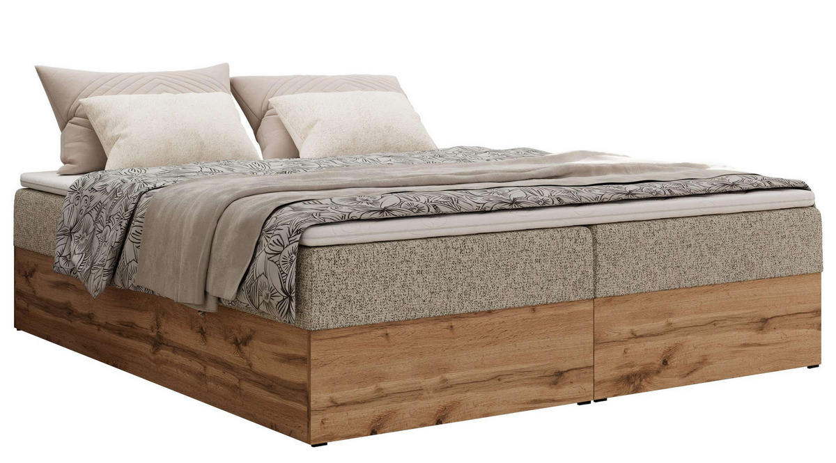 MKS BOXBETT WOOD ZERO 160/200 - Dunkelbeige Struktur - H3 - Topper T25
