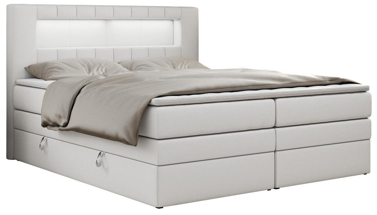 MKS BOXSPRINGBETT GOLD-5 KING LED 140/200 Weiß Kunstleder - H4