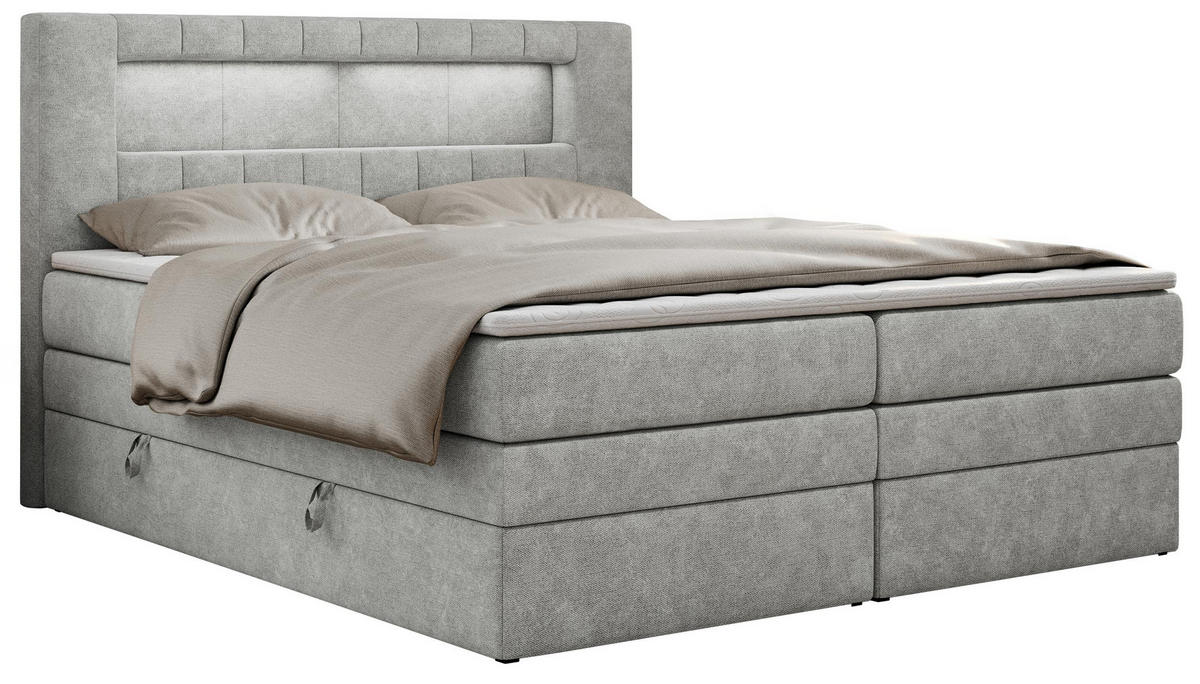 MKS BOXSPRINGBETT GOLD-5 KING LED 200/200 Hellgrau Struktur - H3