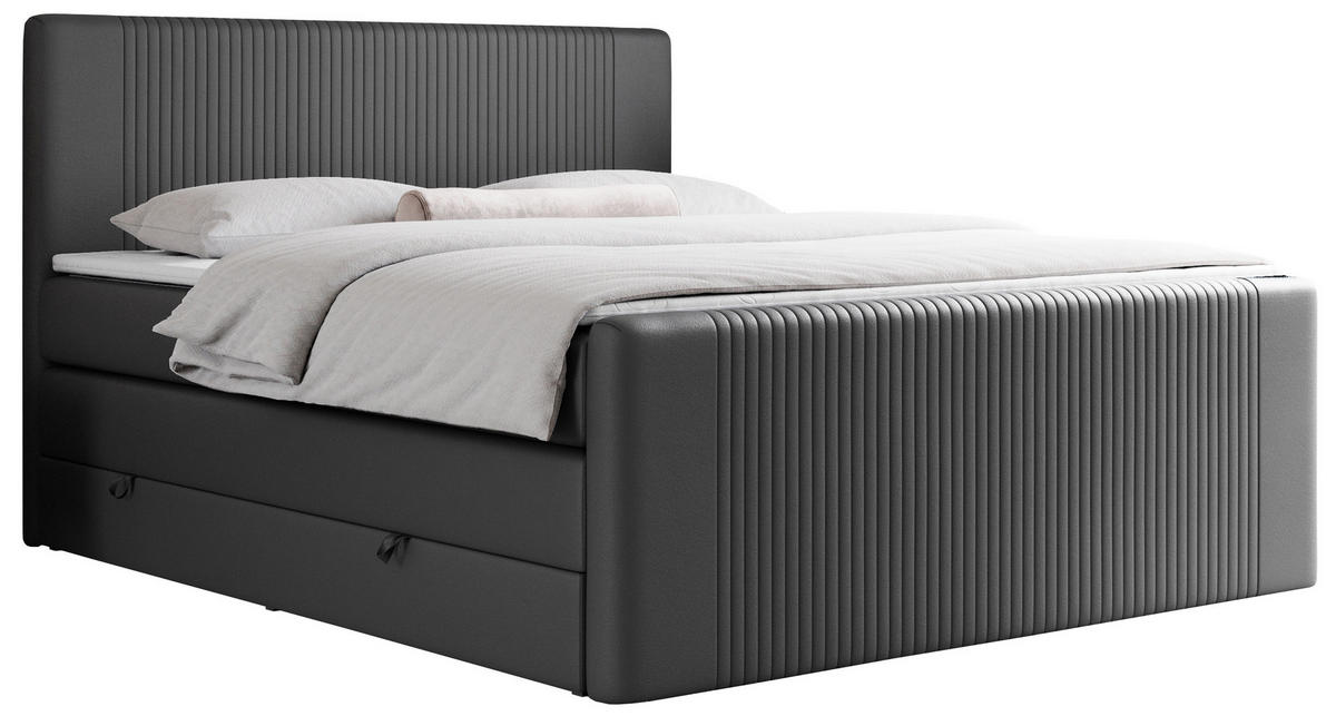 MKS BOXSPRINGBETT KING DOREN 140/200 Dunkelgrau Kunstleder - H4