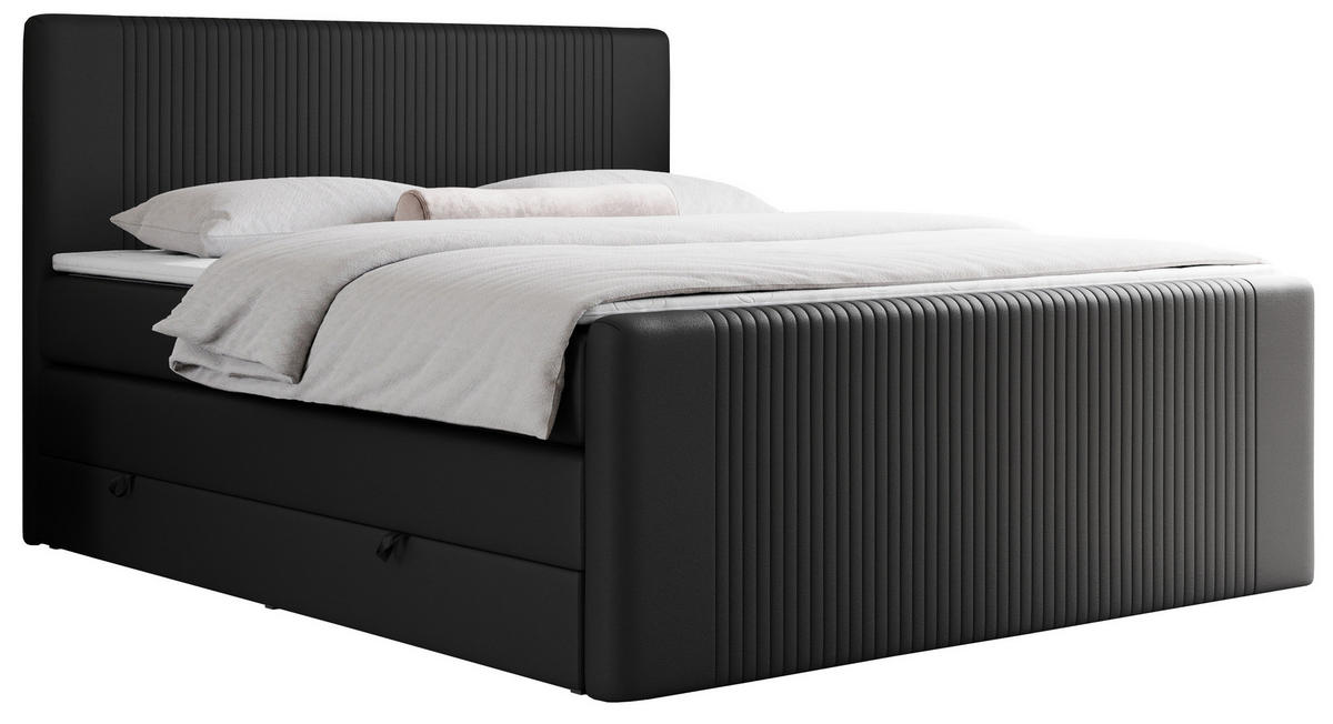 MKS BOXSPRINGBETT KING DOREN 200/200 Schwarz Kunstleder - H3