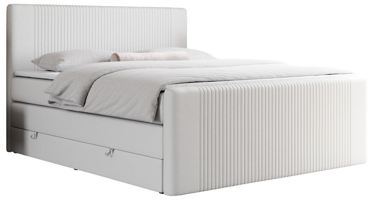 MKS BOXSPRINGBETT KING DOREN 200/200 Weiß Kunstleder - H3
