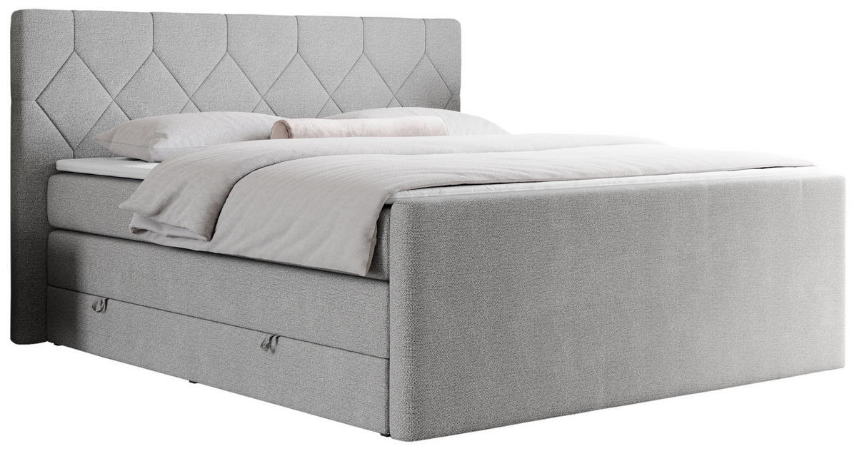 MKS BOXSPRINGBETT KING EIGAR 200/200 Hellgrau Struktur - H4