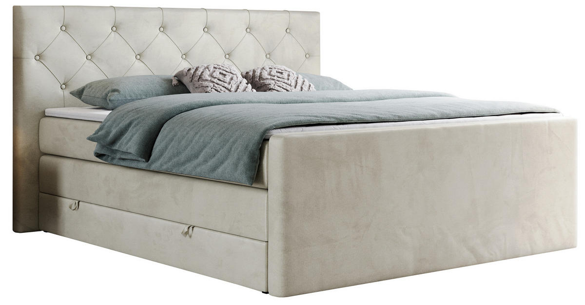 MKS BOXSPRINGBETT KING VELEN 180/200 Beige Velvet - H4