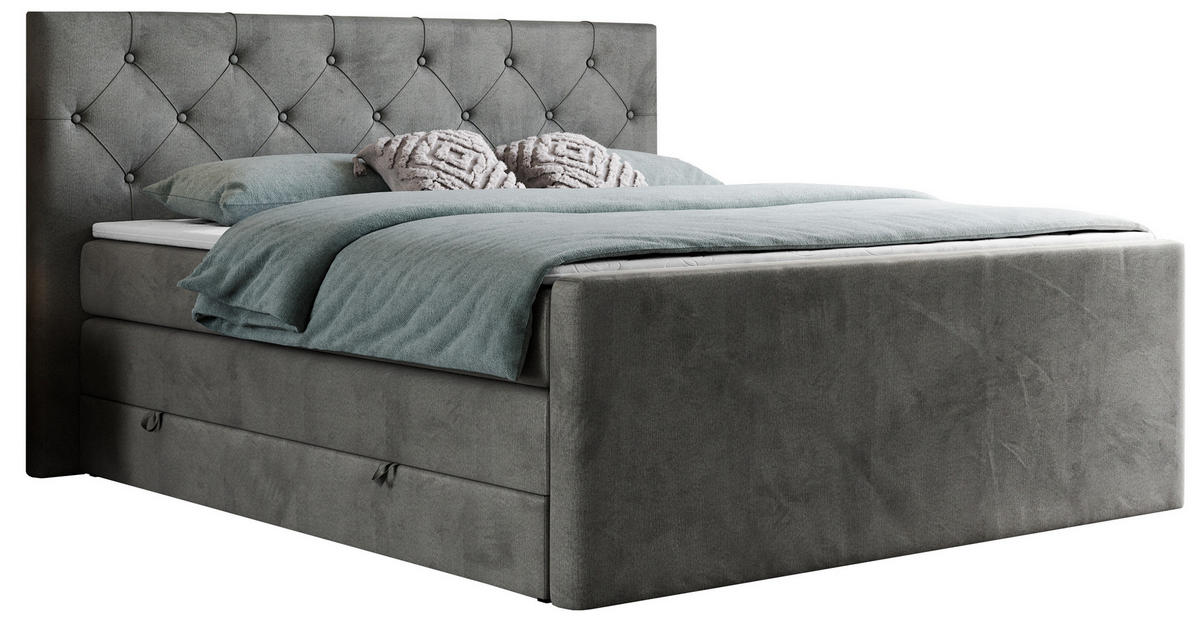 MKS BOXSPRINGBETT KING VELEN 200/200 Dunkelgrau Velvet - H4