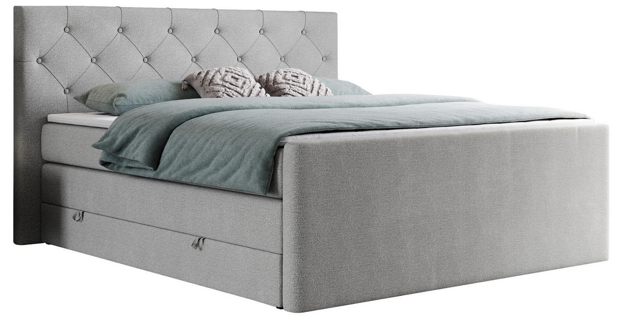 MKS BOXSPRINGBETT KING VELEN 200/200 Hellgrau Struktur - H4