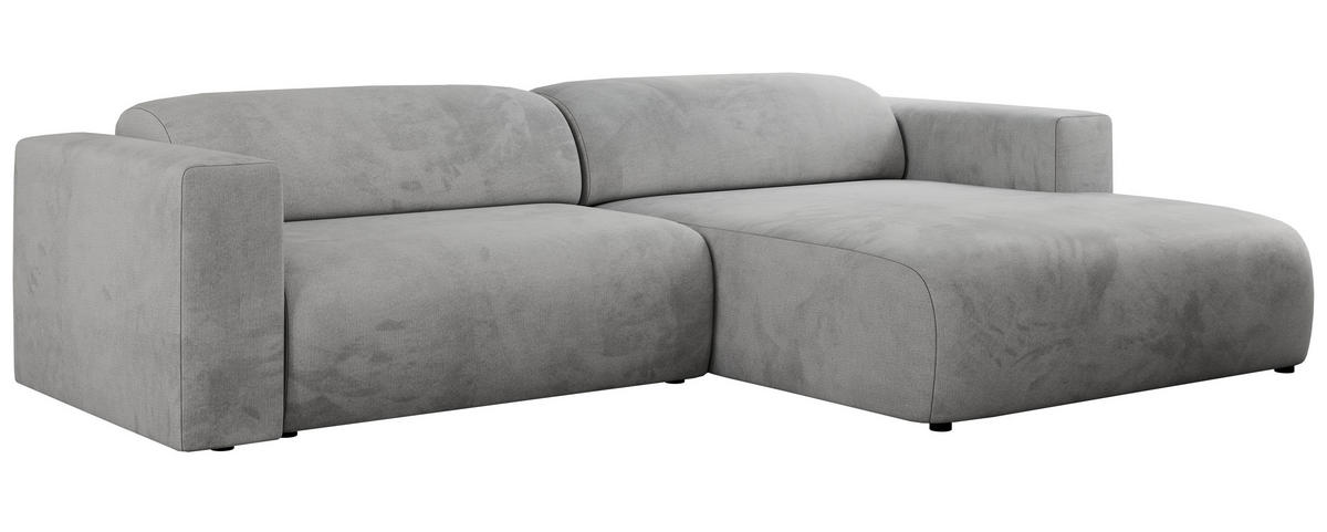 ECKSOFA PASADENA Hellgrau Velvet - Rechts Seite - Hellgrau/Schwarz, Kunststoff/Textil (288/180cm) - MKSMKS