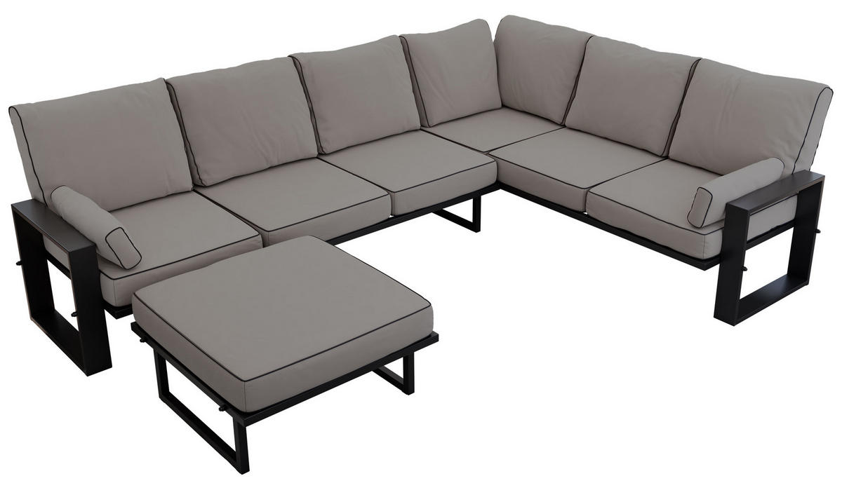 GARTENMÖBEL-SET ELBA: 1x Tisch, 1x Ecksofa, 1x Hocker - Grau - Grau, Textil - MKS