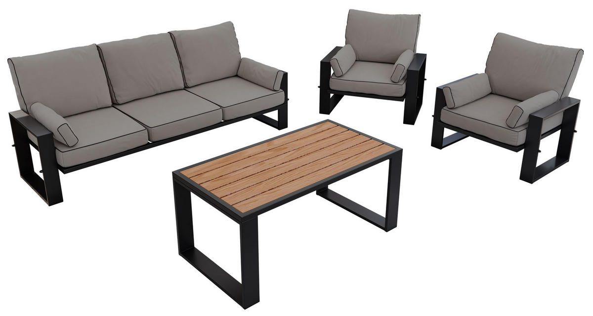 MKS GARTENMÖBEL-SET ELBA: 1x Tisch, 1x Sofa, 2x Sessel - Grau