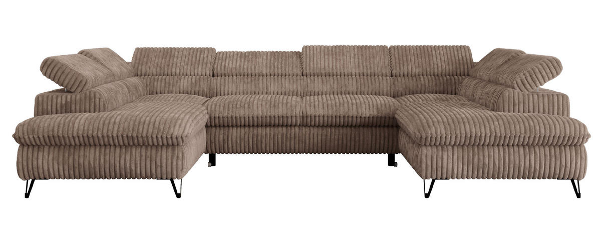 WOHNLANDSCHAFT PETER U Cord Braun - Schwarz/Braun, Textil/Metall (346/76/208cm) - MKS