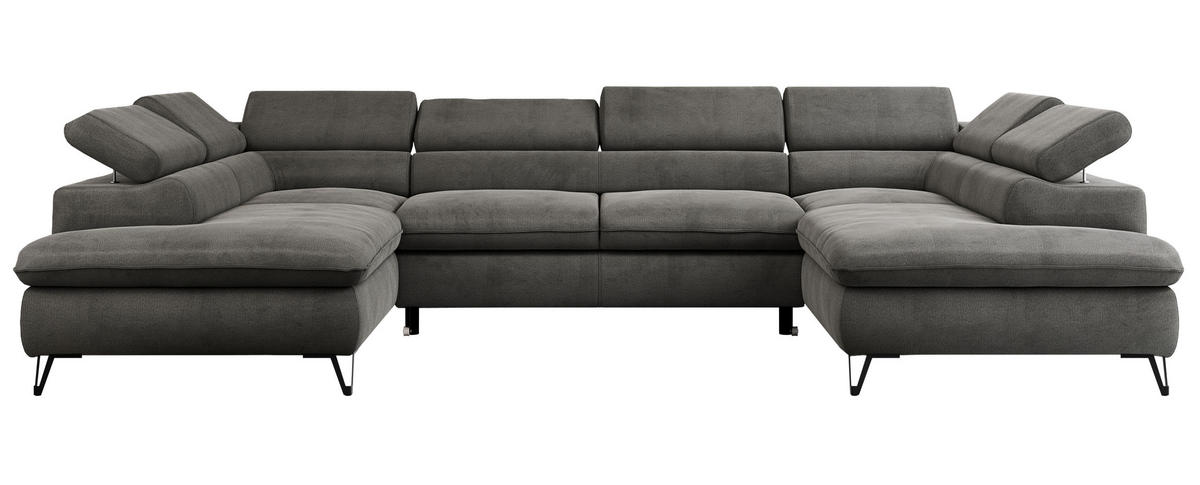 WOHNLANDSCHAFT PETER U Velvet Dunkelgrau - Dunkelgrau/Schwarz, Textil/Metall (346/76/208cm) - MKS