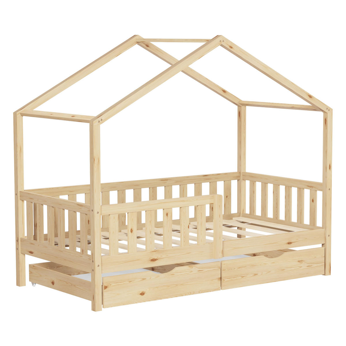 ML-DESIGN HAUSBETT 80x160 cm Natur aus Kiefernholz mit 2 Schubladen und Rausfallschutz