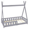 Das gemütliche Kinderbett von ML-Design passt perfekt in jedes Kinderzimmer und ist durch seine stabile Kiefernholz Konstruktion und das verspielte Design besonders kinderfreundlich. Das Kinderbett mit dem offenen Dach wird deine Kinder begeistern, denn der Fantasie sind mit diesem Bett keine Grenzen gesetzt: Es ist nicht nur ein gemütlicher Schlafplatz, sondern zugleich auch der perfekte Spielort. Das Aufbauen erfolgt dank der mitgelieferten Anleitung kinderleicht und schnell.Die vertikalen Streben eignen sich ideal um das Bett zusätzlich mit Decken oder Laken zu verzieren, deine Kinder können sich das eigene Fort ganz einfach und schnell selber bauen. Die Liegefläche von 140 x 70 cm ist ideal für ein Kind bis zu 6 Jahren.