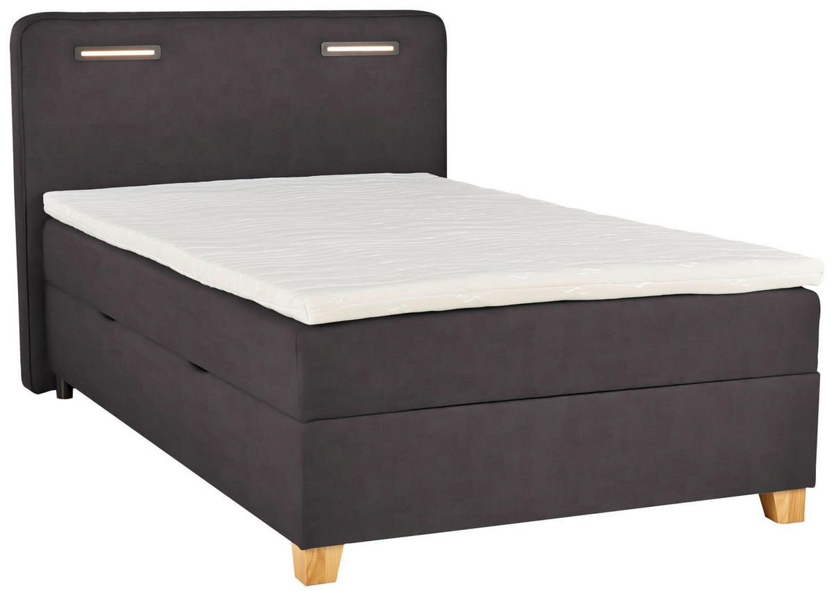 Bettkasten ergänzt praktischen Stauraum für alle Accessoires, die griffbereit untergebracht werden wollen. Wenn dieses Boxbett (ca. 100 x 200 cm) in Dunkelgrau mit Bettkasten, Matratze, Topper,
