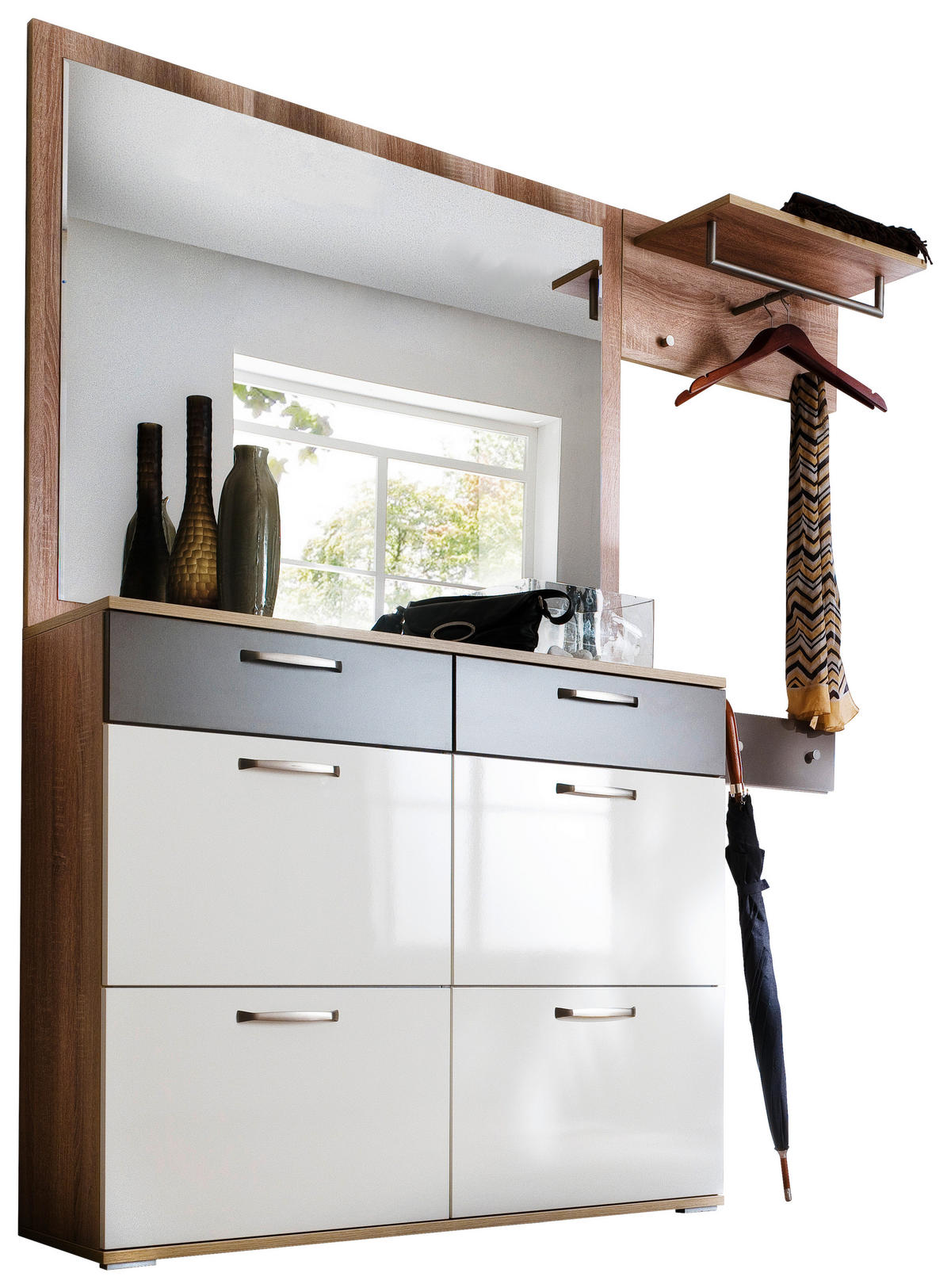 Garderobe (4-teilig) in Eichefarben, Weiß und Braun: Wohnträume werden wahr