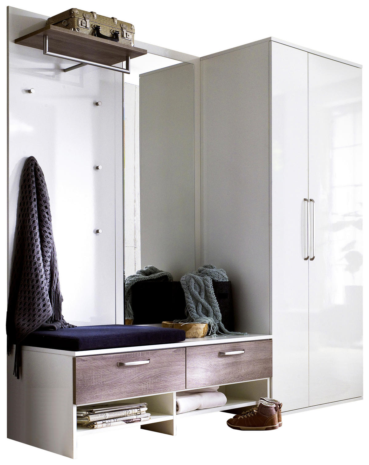 Garderobe (5-teilig) in Weiß und Eichefarben: Wohnträume werden wahr