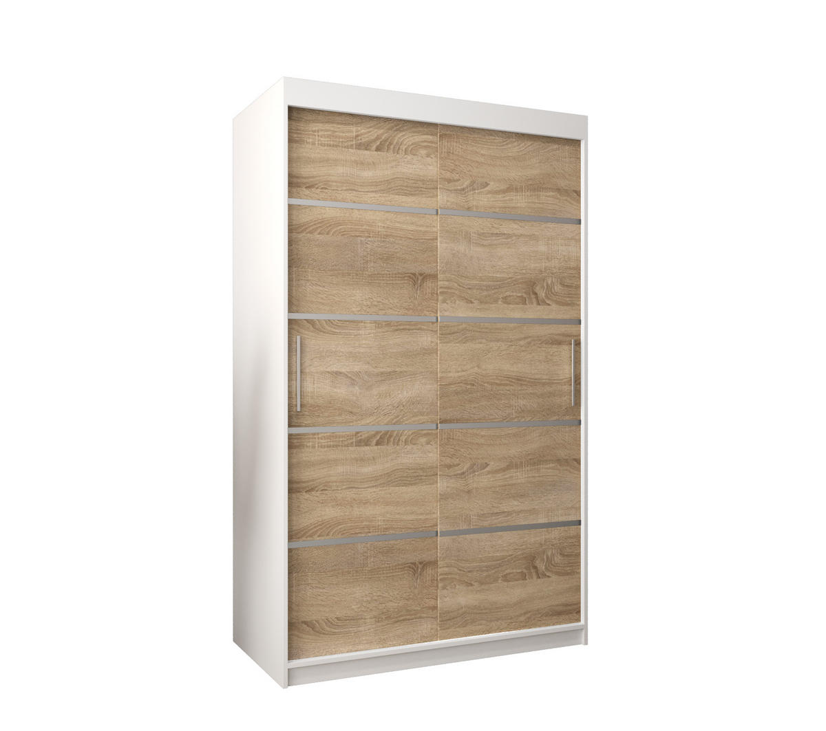 SCHWEBETÜRENSCHRANK 200/120/62 2-türig - Silberfarben/Weiß, Holz/Kunststoff (120/200/62cm) - MÖBEL KRYSPOL