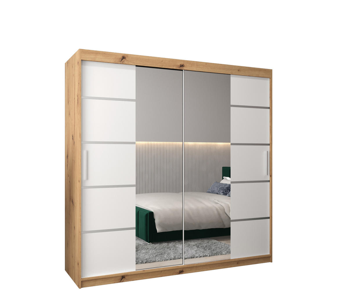 SCHWEBETÜRENSCHRANK 200/200/62 2-türig - Silberfarben/Eiche Artisan, Holz/Kunststoff (200/200/62cm) - MÖBEL KRYSPOLMÖBEL KRYSPOL