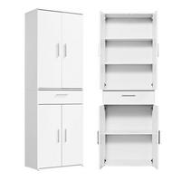 - Materialzusammensetzung: Korpus aus Spanplatte mit beständiger Kunstharzbeschichtung und push-to-open Öffnungsfunktion oder dezenten Kunststoffgriffen in silber-grau beim Schrank 'Der Lange'.
