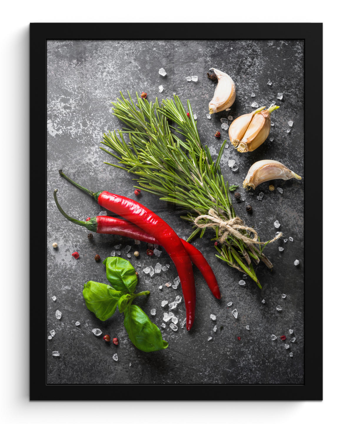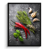 Über das Bild Verschiedene Kräuter und Gewürze auf einem Betonhintergrund.