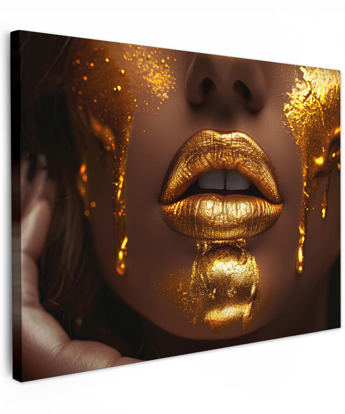 LEINWANDBILD Frau - Gold - Luxus - Porträt 40x30 cm - Goldfarben, Textil (40/30cm) - MuchoWowMuchoWow