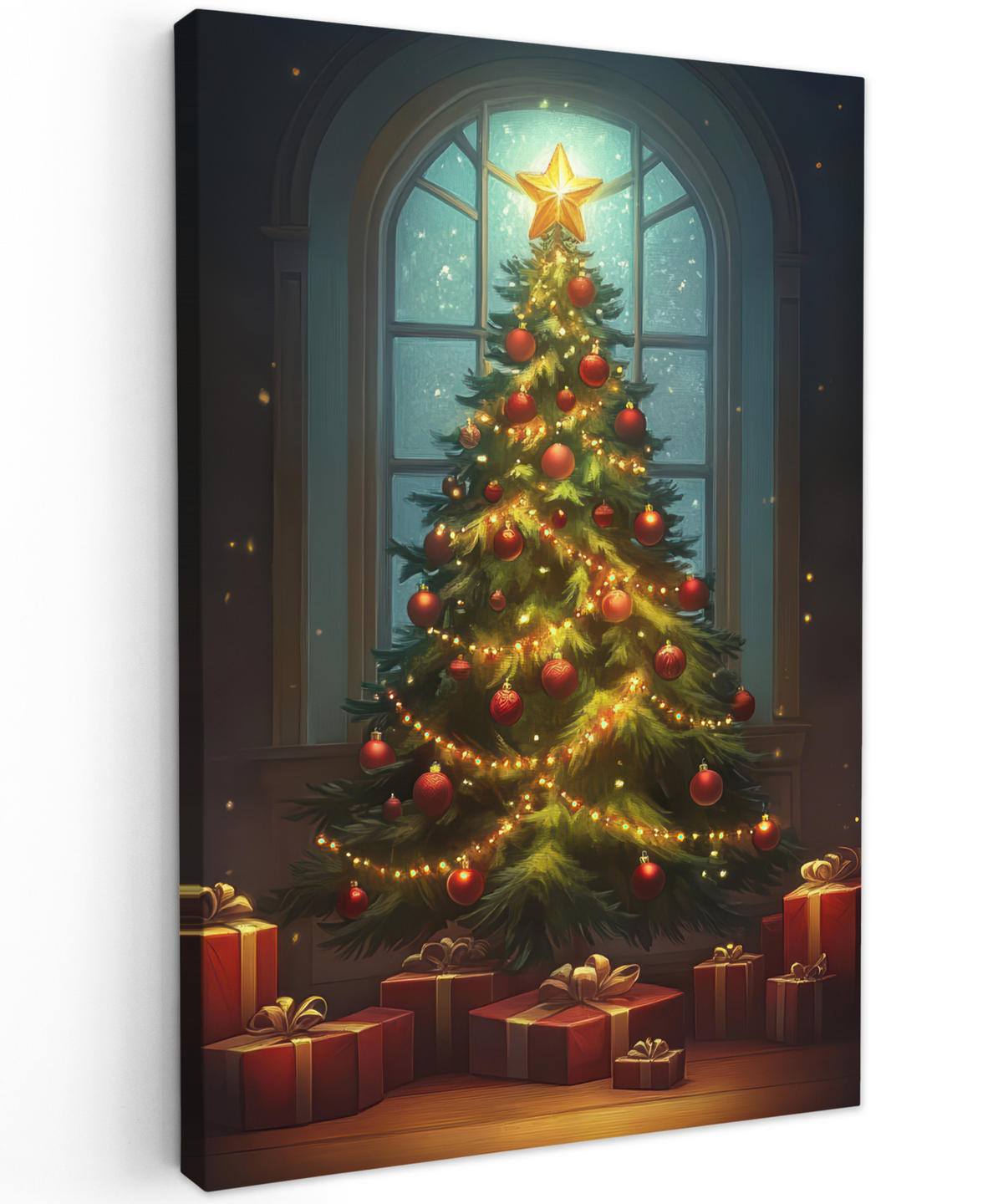 MuchoWow LEINWANDBILD Weihnachtsbaum - Geschenk - Winter 80x120 cm