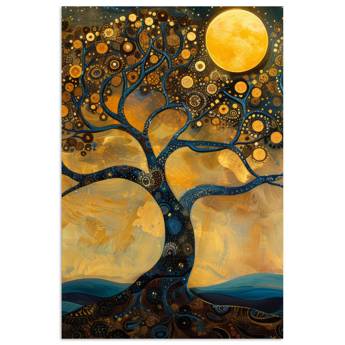 MuchoWow POSTER Baum - Mond - Blumen - Gold - Kunst 40x60 cm