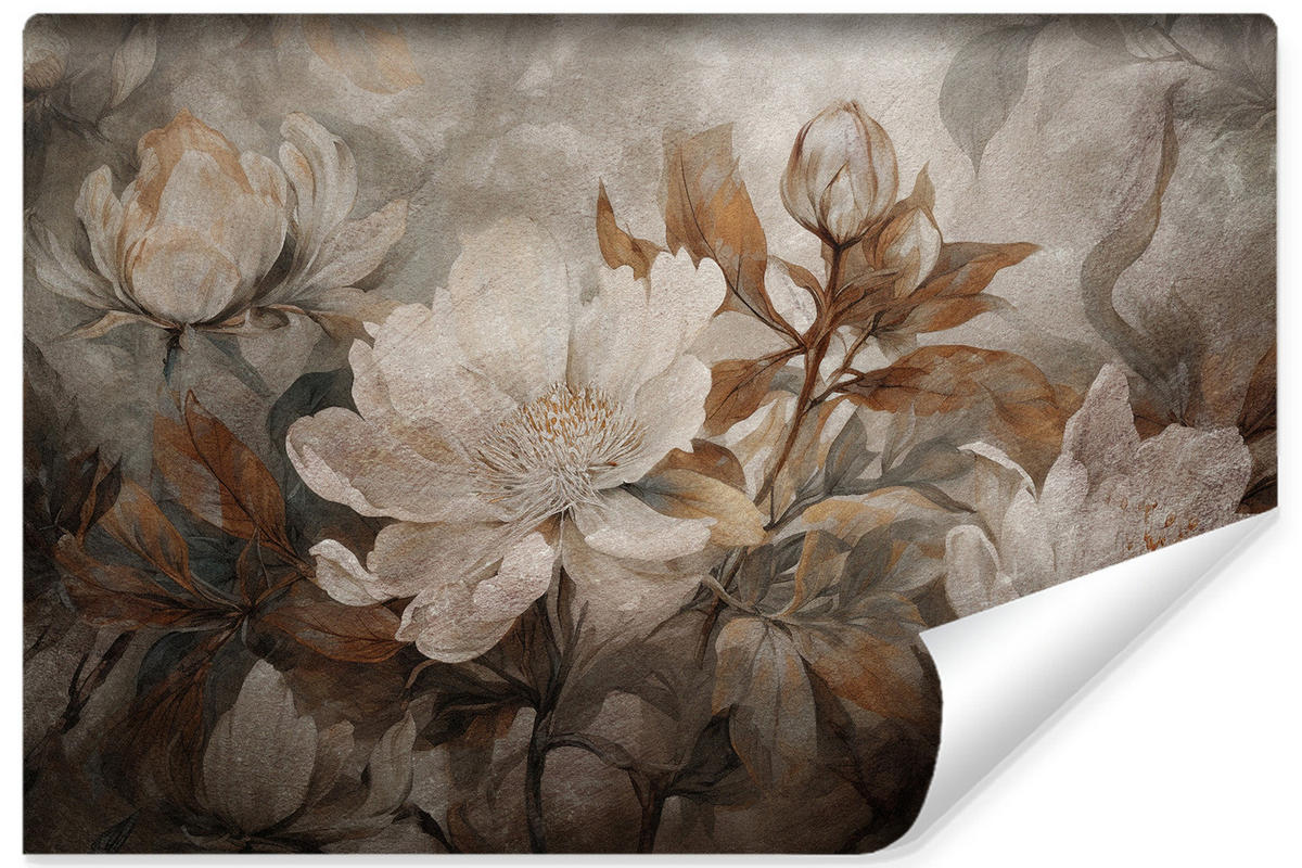 FOTOTAPETE Blumen Blätter Pflanzen Natur Retro Stil 520x318cm - Beige/Braun, Papier (520/318cm) - MuraloMuralo