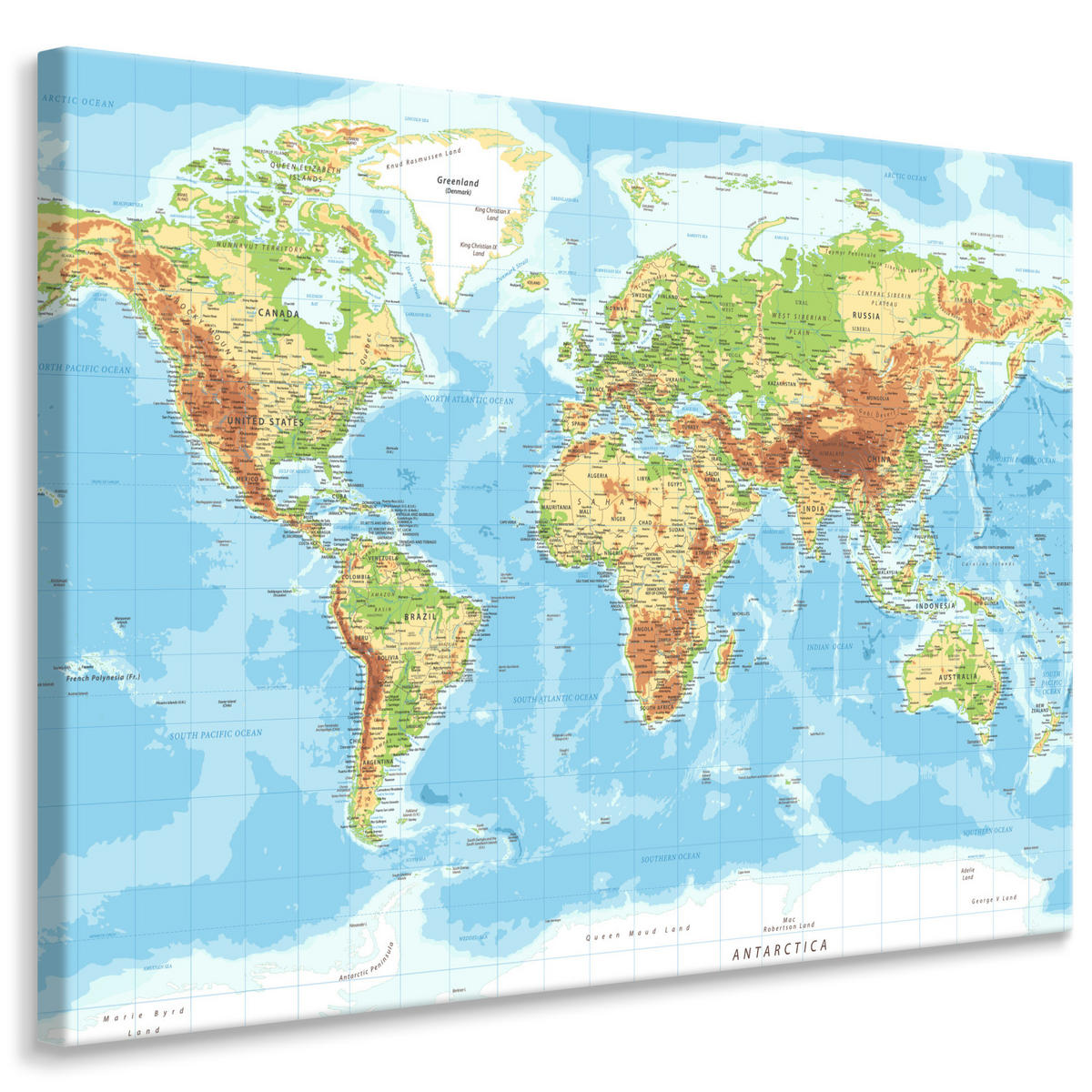 Muralo LEINWANDBILD Bunte Politische Weltkarte 70x50