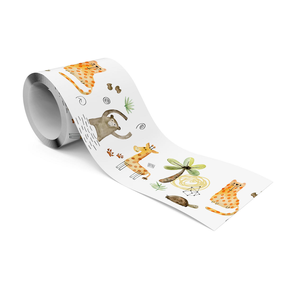 TAPETENBORDÜRE selbstklebend für Kinder wilde TIERE tropische Pflanzen - Beige/Schwarz, Papier (10/300/300cm) - MuraloMuralo