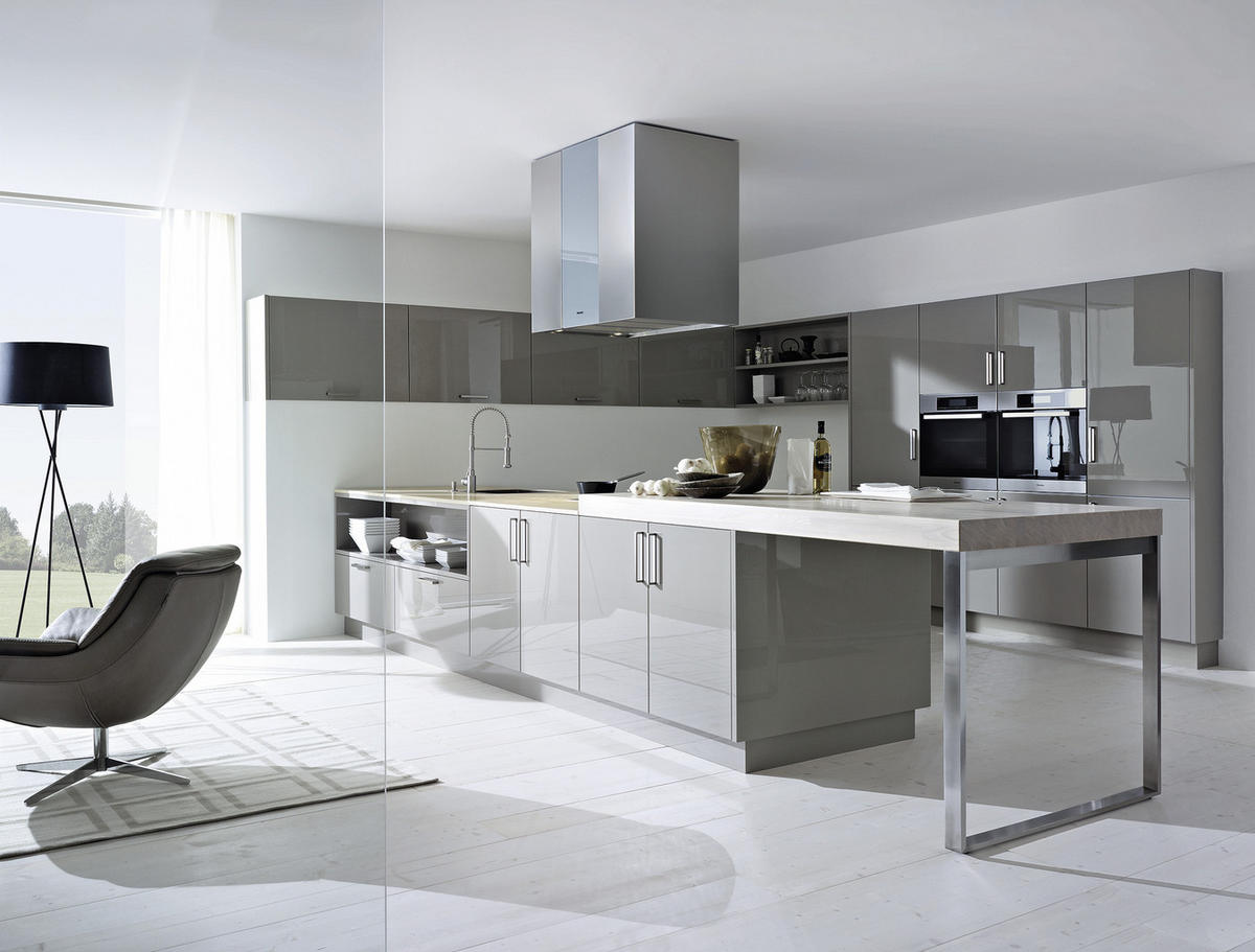 Attraktive Einbauküche von NEXT 125 in hochglänzendem Braun