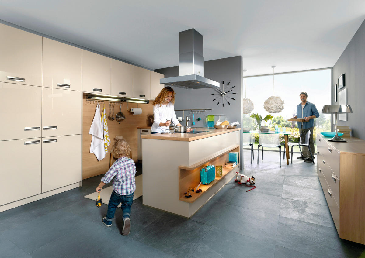 Stilvolle Einbauküche aus dem Hause NOVEL: Entdecken Sie die zeitlose Schönheit dieser eleganten Küche. Die Möbel sind aus hochwertiger Flachpressplatte gefertigt und sehen in Kombination ausgesprochen stimmig und harmonisch aus. Dank der offenen Form sowie der großzügigen Arbeitsplatten kochen Sie in der Einbauküche besonders komfortabel: Bereiten Sie darauf frisches Gemüse, schmackhafte Braten oder leckere Salate bequem zu. Auch köstliche Nachspeisen wie verschiedene Backwaren, Crème brulée oder andere Desserts gelingen im Handumdrehen. Dafür sorgt auch der Backofen in komfortabler Höhe. Auf der offenen Theke können Sie zudem ein schnelles Frühstück oder Ihren morgendlichen Kaffee genießen. Die Einbauküche bietet viel Platz für Ihre Küchengeräte: Geräumige Schrankelemente schaffen Stauraum für Töpfe, Schüsseln oder Pfannen. Geschmackvolle Optik: Die champagnerfarbenen Möbel sehen ausgesprochen ästhetisch aus und schaffen so ein angenehmes Wohnambiente. Die chicen Griffe runden das moderne Design zusätzlich ab. Dank einer Vielzahl unterschiedlicher Fronten, Arbeitsplatten und Korpora können Sie sich bei uns Ihre persönliche Traumküche zusammenstellen. Gerne planen unsere Fachberater Ihre individuelle Einrichtung aus verschiedenen Varianten, Farbalternativen und Ausführungen. Wir freuen uns auf Ihren Besuch in unseren Filialen! Diese Einbauküche von NOVEL wird Sie begeistern!