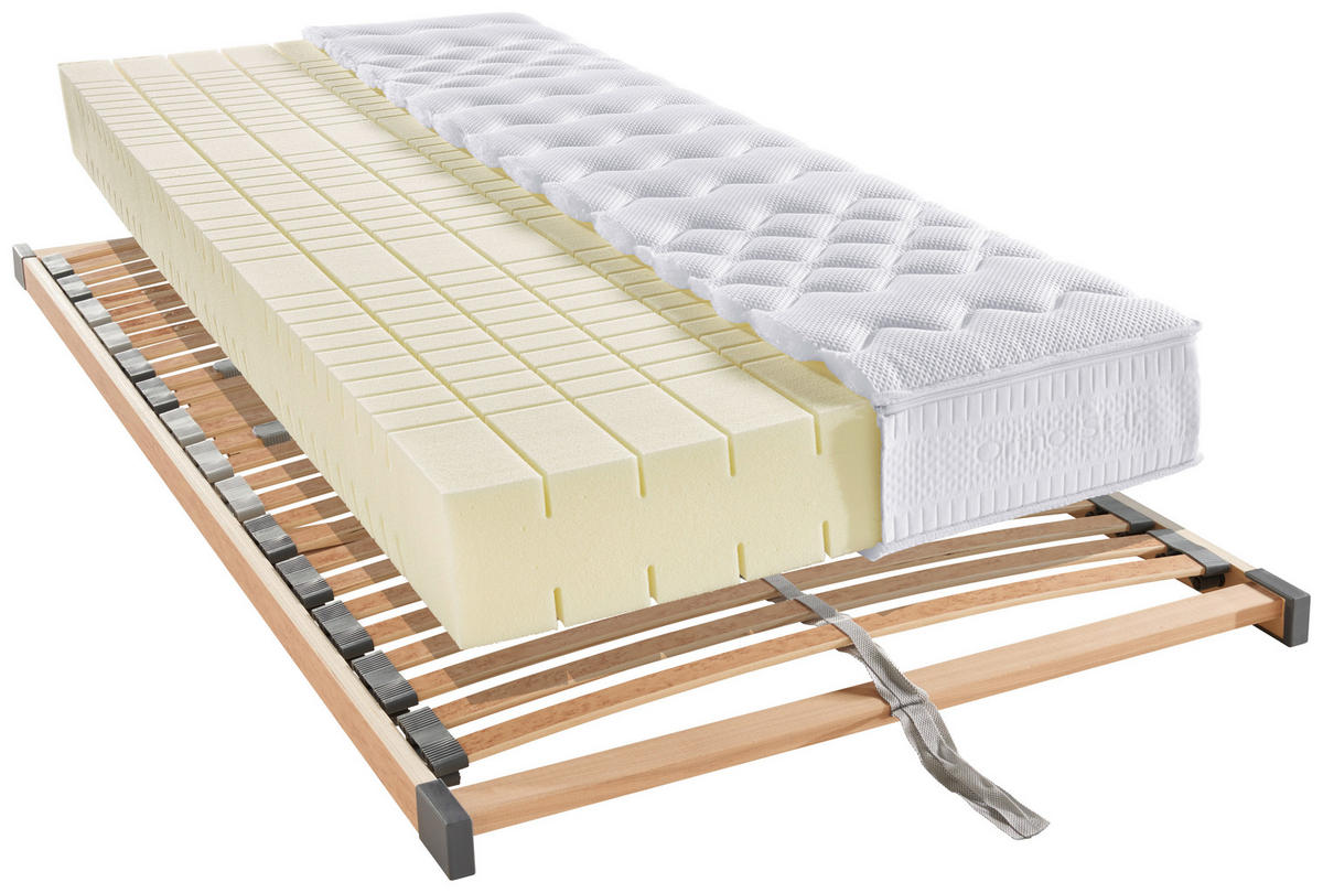 Der stabile Schichtholzrahmen überzeugt mit Mehrzonen-Liegekomfort auf 28 Federholzleisten. Dank der Lagerung in Duokappen federn die Leisten leicht nach und sorgen so für angenehmen Schlaf. Mit dem Mittelgurt und der Mittelzonenverstärkung passen Sie den Lattenrost genau an Ihre Bedürfnisse an. Dieses Matratzenset (Liegefläche: ca. 90 x 200 cm) mit 7-Zonen-Kaltschaumkern lässt keine Wünsche offen!