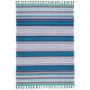 Der moderne Kelim aus 100 % Baumwolle bringt stilvolle Eleganz in Ihr Zuhause. Dieser handgewebte Teppich verbindet traditionelle Handwerkskunst mit einem zeitgemäßen Design, das durch ein lebhaftes, buntes Streifenmuster besticht. Die hochwertige Baumwolle sorgt dafür, dass der Teppich nicht nur weich und langlebig ist, sondern auch eine natürliche und angenehme Atmosphäre in jedem Raum schafft. Ein weiterer Vorteil dieses Baumwoll-Kelims ist seine Pflegeleichtigkeit. Der Teppich lässt sich leicht reinigen und ist damit ideal für Haushalte mit Kindern oder Haustieren. Regelmäßiges Staubsaugen oder das Abwischen mit einem feuchten Tuch genügt, um den Teppich in einwandfreiem Zustand zu halten. Er eignet sich daher perfekt für den täglichen Gebrauch in stark frequentierten Bereichen wie Fluren oder der Küche. Der Teppich bringt Stil und Komfort in Ihr Zuhause und ist die perfekte Wahl für alle, die moderne Einrichtung mit natürlichen Materialien verbinden möchten.