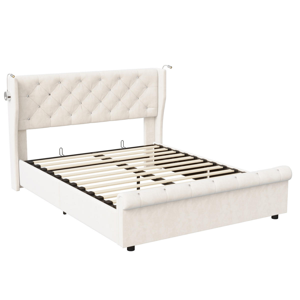 POLSTERBETT 160x200 cm, Beige, Leselichte und USB - Beige, Textil/Metall (160/200cm)